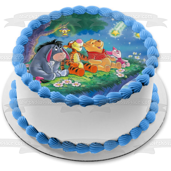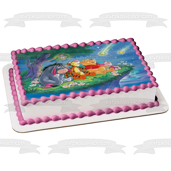 Decorate your Cake with this Winnie the Pooh and Friends Stargazing themed Edible Cake Topper Image featuring Eeyore, Piglet and Tigger!
