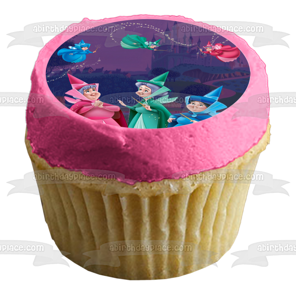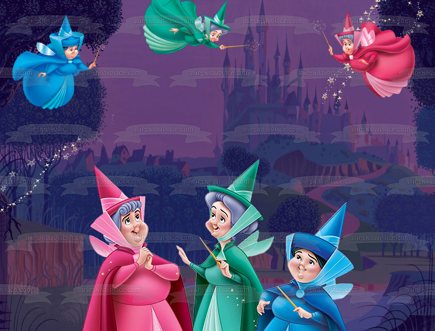 Disney the Good Fairies Flora Fauna Merryweather Sleeping Beauty Castle Quarter Edible Cake Topper Image ABPID56770