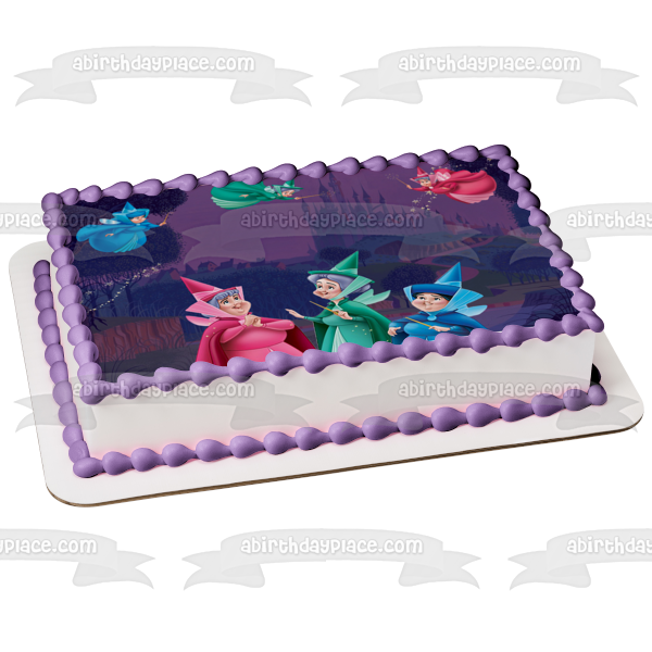 Decorate your Cake with this Disney The Good Fairies themed Edible Cake Topper Image featuring Flora, Fauna and Merryweather from Sleeping Beauty!
