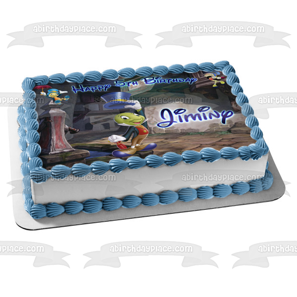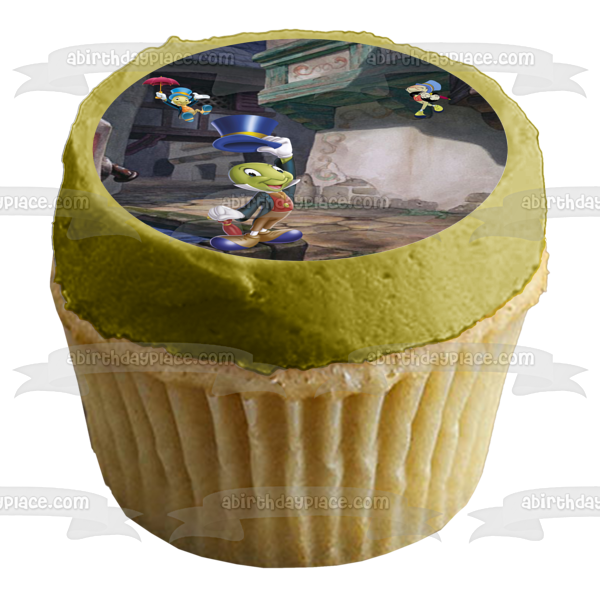 Decorate your Cake with this Jiminy Cricket Tip of the hat themed Edible Cake Topper Image featuring a Classic Disney Film Pinocchio!