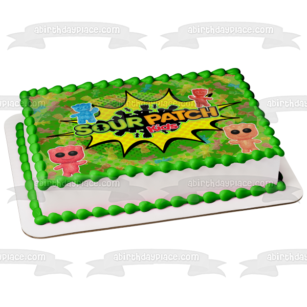 Decorate your Cake with this Sour Patch Kids Candy themed Edible Cake Topper Image featuring Pops Halftone!