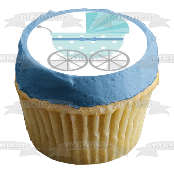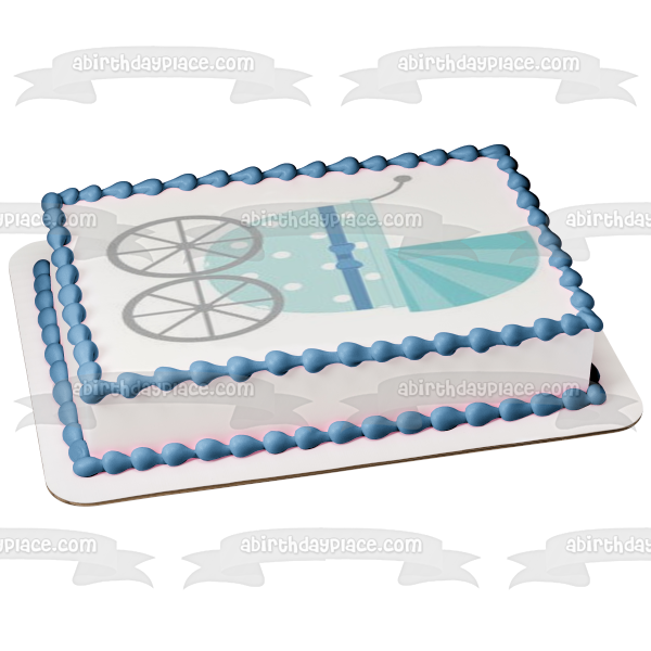 Decorate your Cake with this Blue Baby Stroller themed Edible Cake Topper Image!
