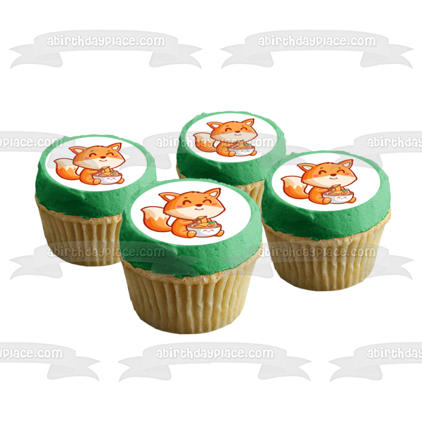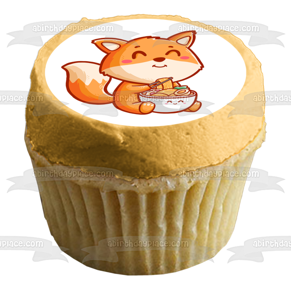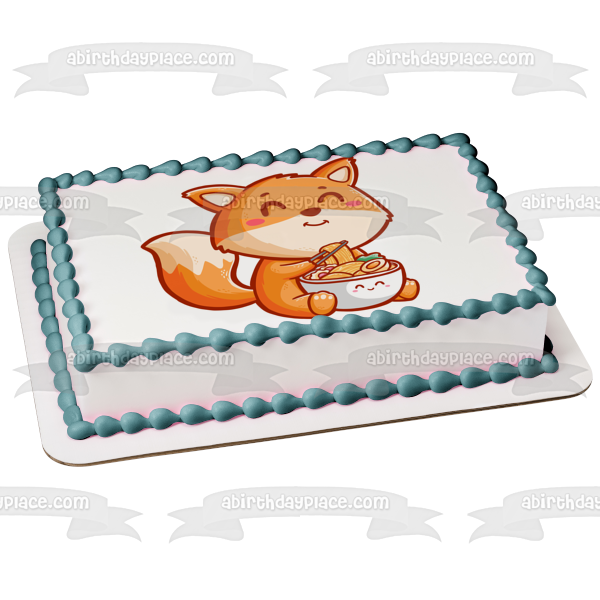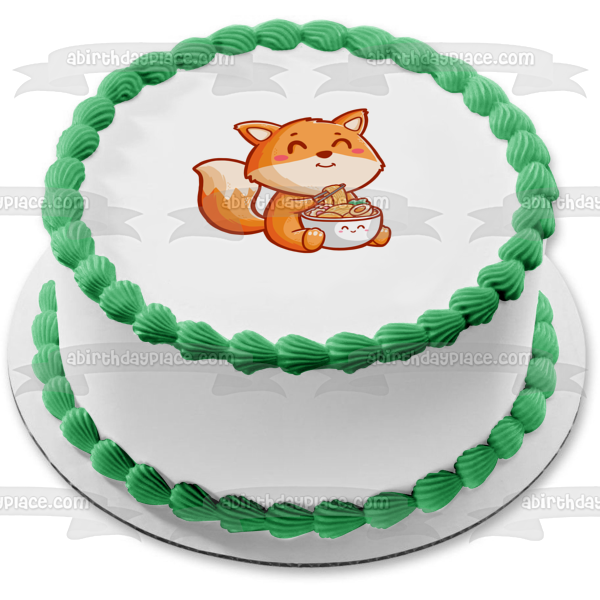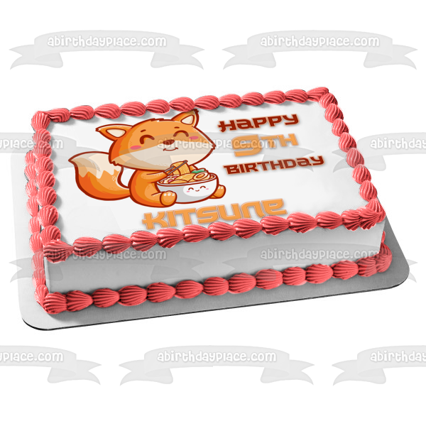 Decorate your Cake with this Kitsune themed Edible Cake Topper Image featuring Fox Ramen Noodle Oriental Anime Manga Illustration Cartoon!