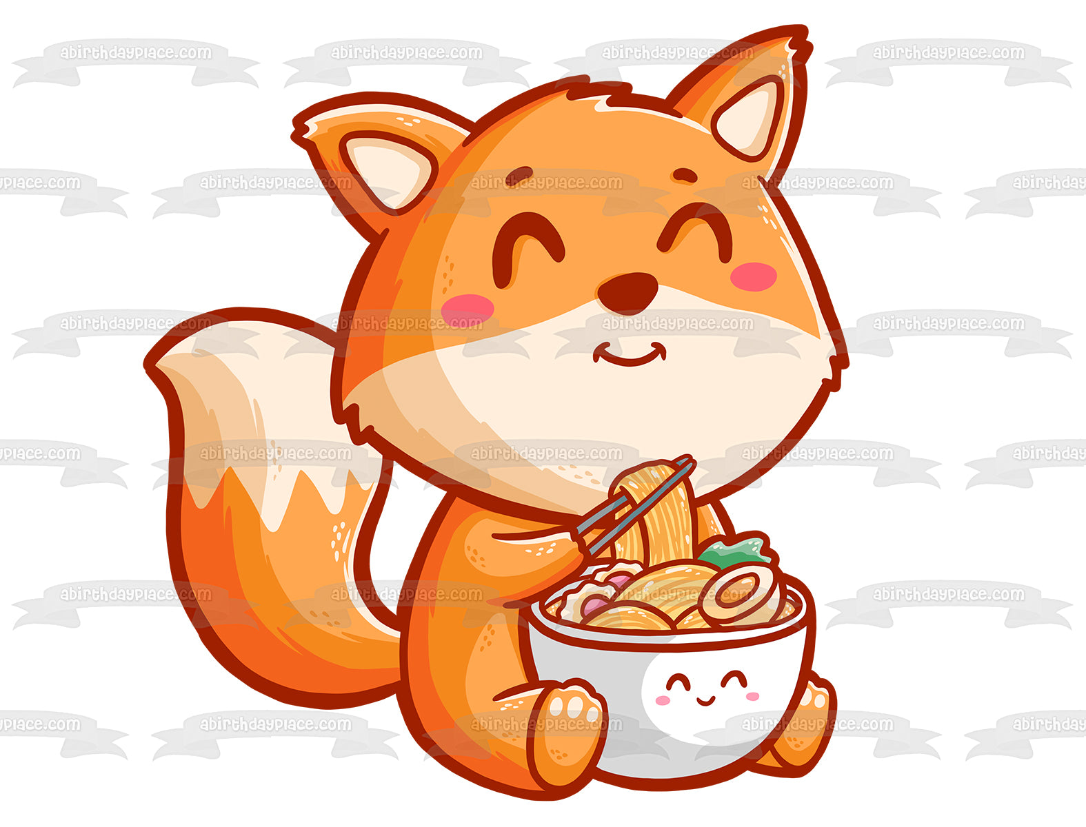 Kitsune Fox Ramen Noodle Oriental Anime Manga Illustration Cartoon Edible Cake Topper Image ABPID56850
