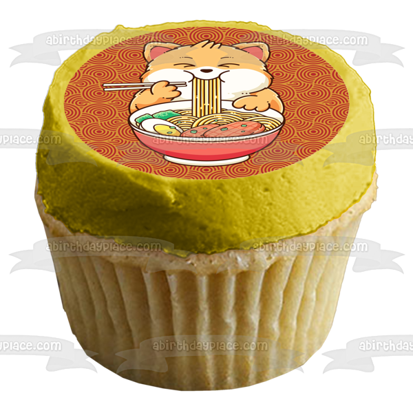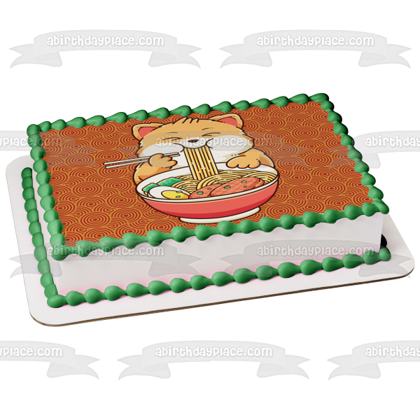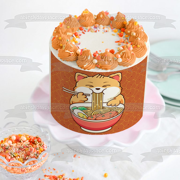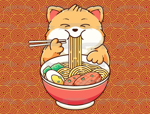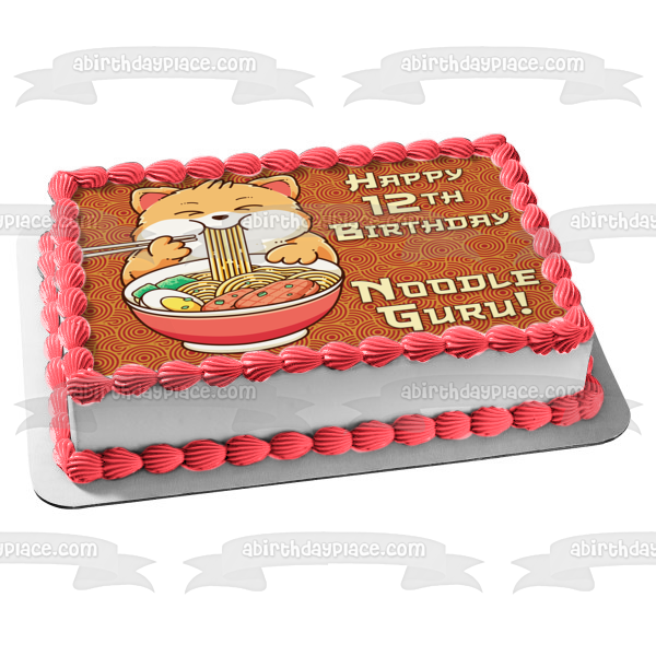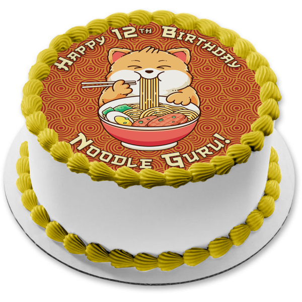 Decorate your Cake with this Noodle Guru themed Edible Cake Topper Image featuring Ramen Cat Oriental Anime Manga Illustration!