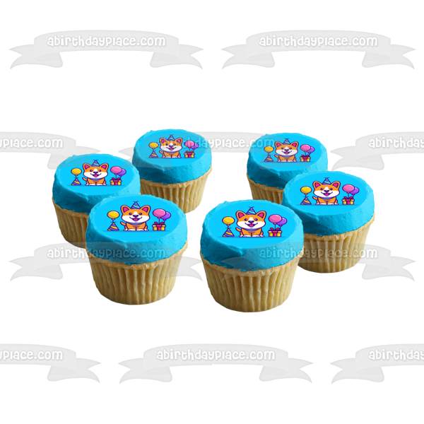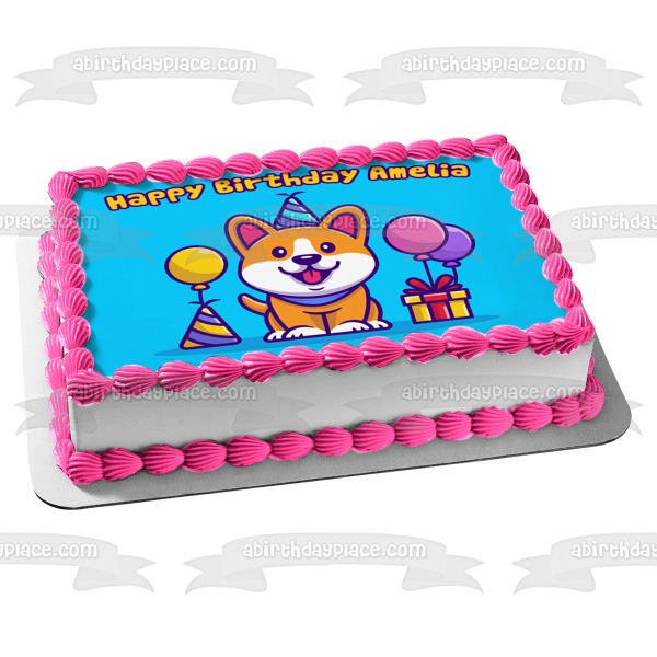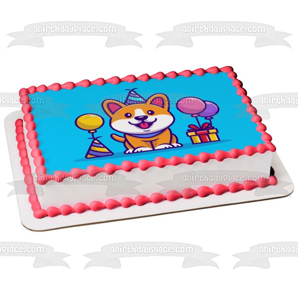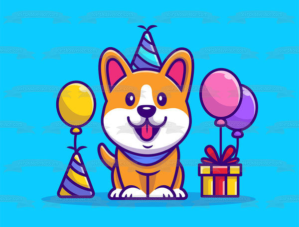 Decorate your Cake with this Party Corgi Illustration Cartoon themed Edible Cake Topper Image featuring a Dog Puppy Canine!