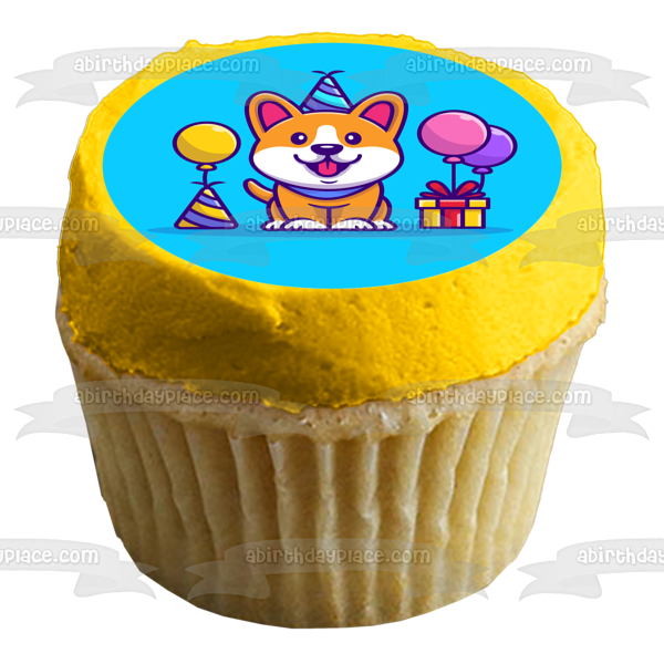 Decorate your Cake with this Party Corgi Illustration Cartoon themed Edible Cake Topper Image featuring a Dog Puppy Canine!