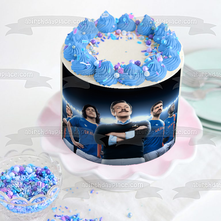 Decorate your Cake with this Ted Lasso themed Edible Cake Topper Image featuring a Soccer Team Stadium Shot Sports Comedy TV Show!