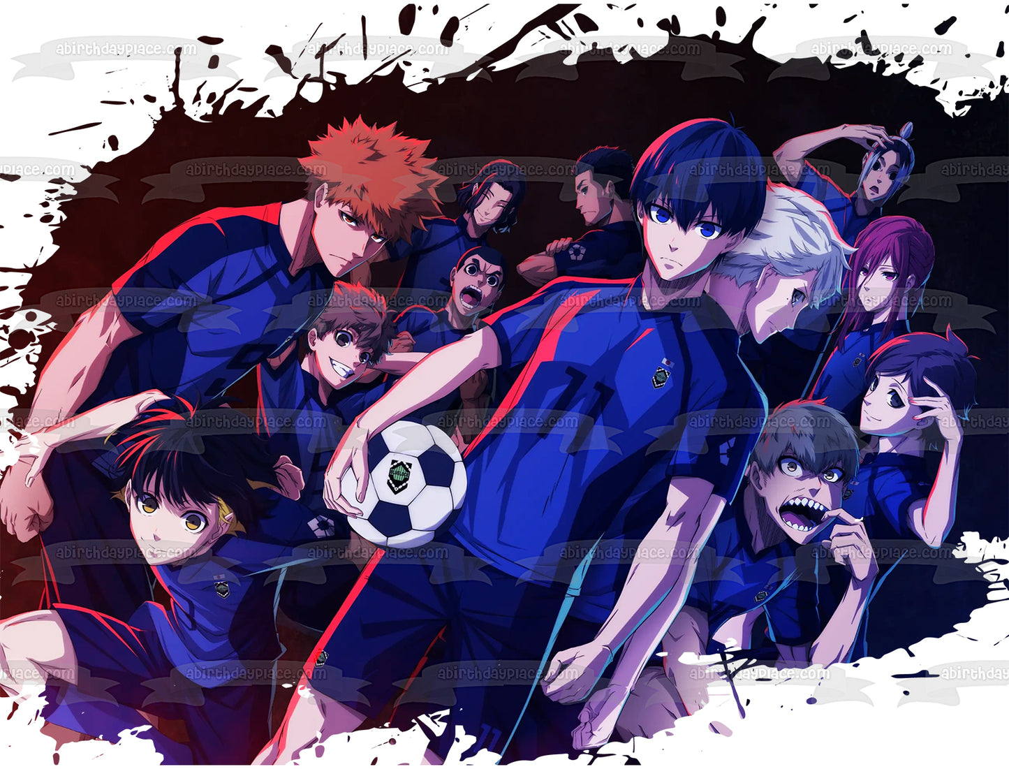 Decorate your Cake with this Blue Lock Anime Manga Soccer themed Edible Cake Topper Image featuring Yoichi Asahi Gin Gurimu Hyoma Jingo Meguru Okuhito Rensuke Wataru Yudai!