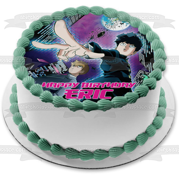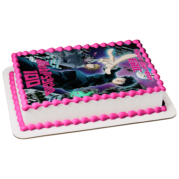 Decorate your Cake with this Mob Psycho 100 themed Edible Cake Topper Image featuring Anime Manga Kageyama Arataka and a City Scape!