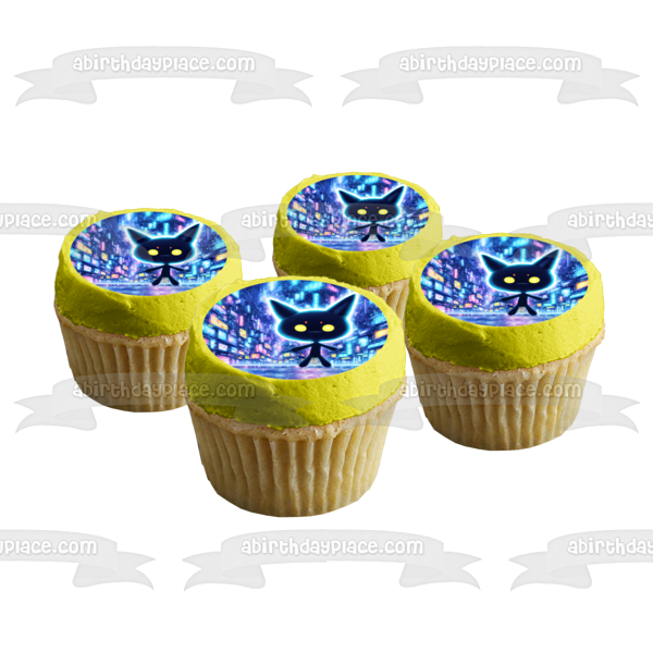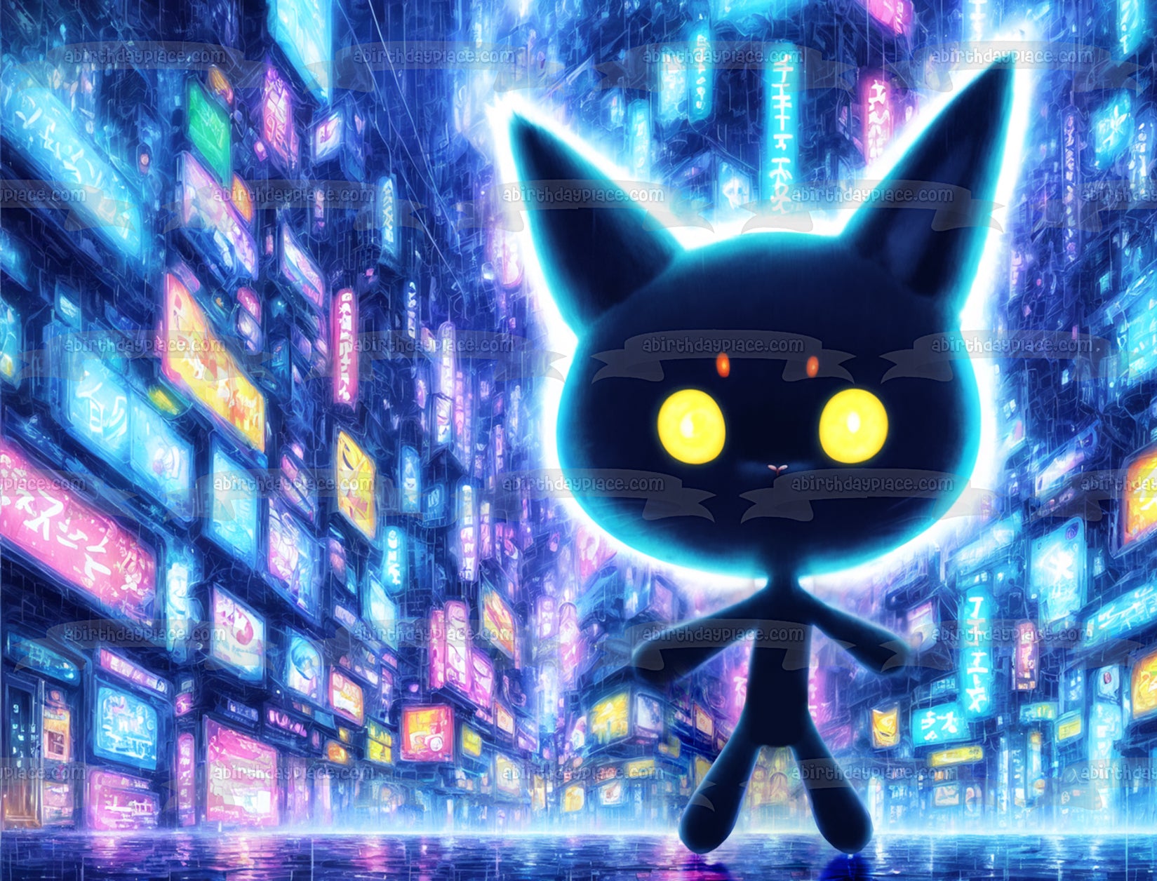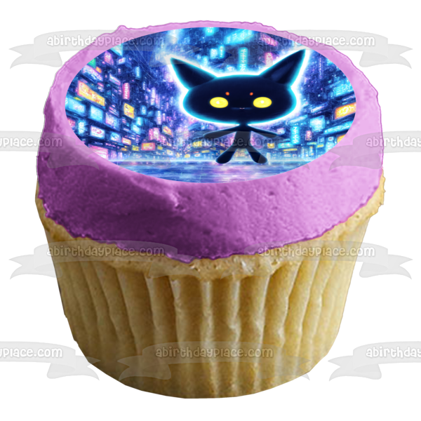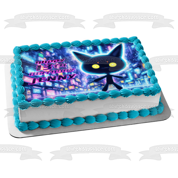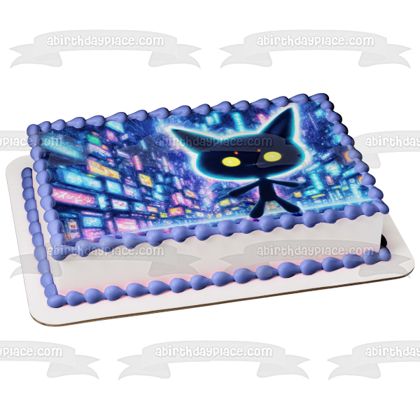 Decorate your Cake with this Kawaii Digital World themed Edible Cake Topper Image featuring a Cat Anime Cartoon!
