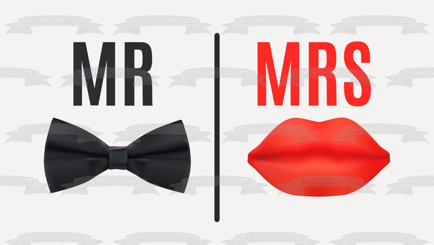 Celebrate your Wedding Day with this Mr and Mrs themed Edible Cake Topper Image featuring a Mustache and Red Lips!