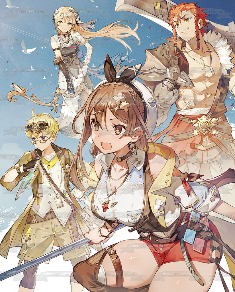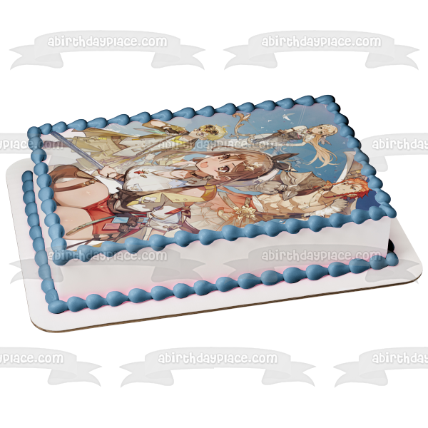 Celebrate yoru day with this Atelier Ryza 2: Lost Legends & the Secret Fairy themed Edible Cake Topper Image featuring Klaudia, Lent, Tao, Patricia, Clifford and Serri!