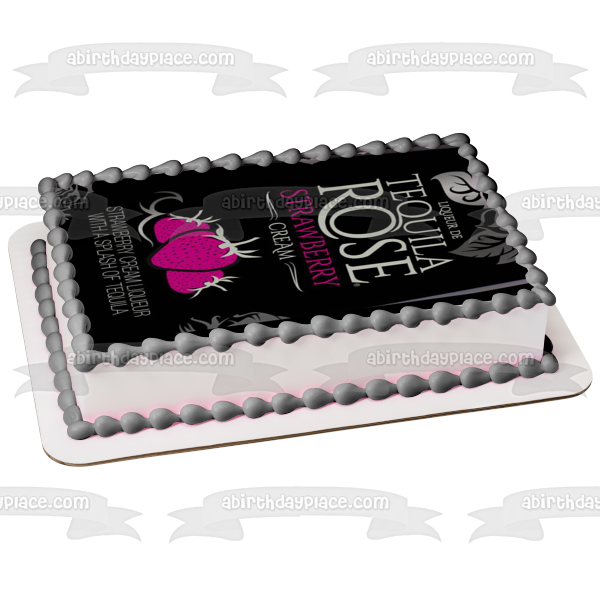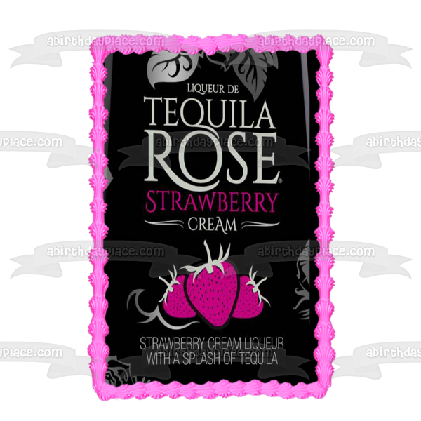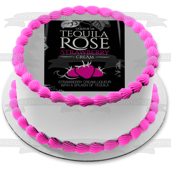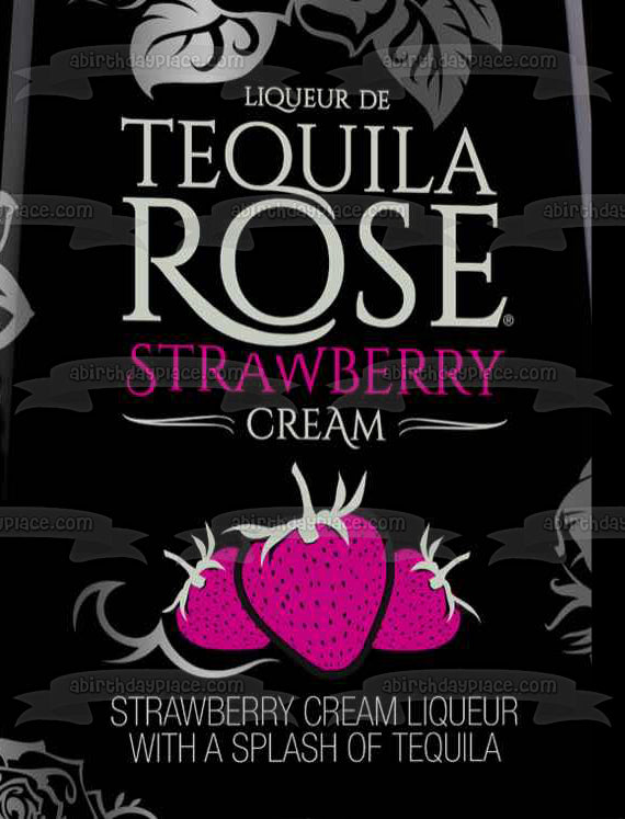Celebrate your special occasion with this Tequila Rose Strawberry Cream themed Edible Cake Topper Image featuring their Label!