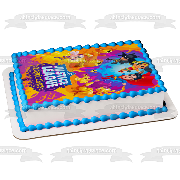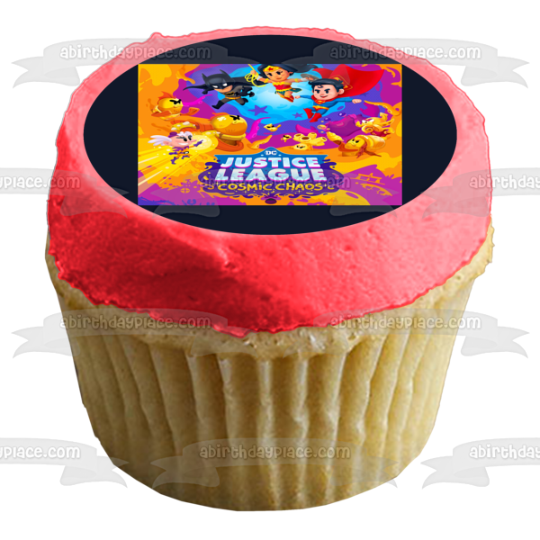 Decorate your Cake with this Justice League: Cosmic Chaos themed Edible Cake Topper Image featuring Batman, Superman and Wonder Woman!