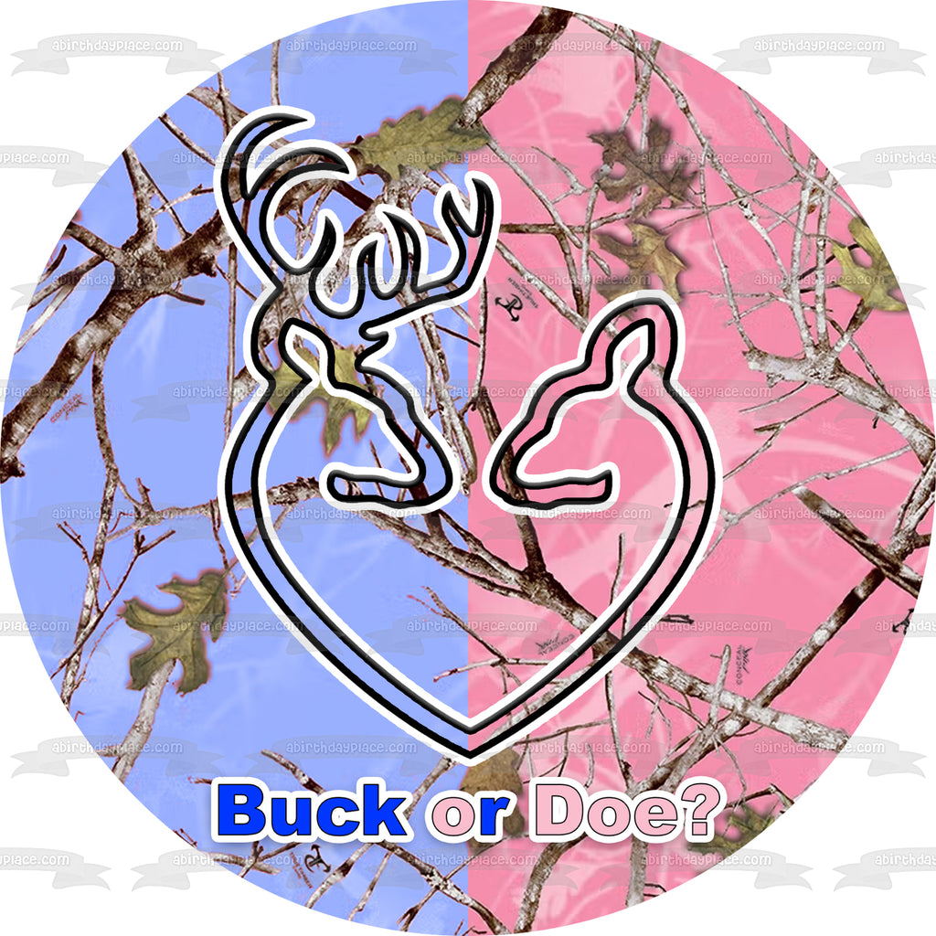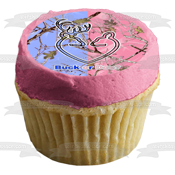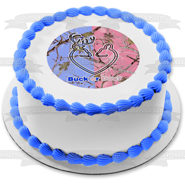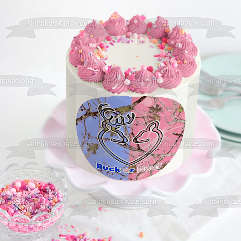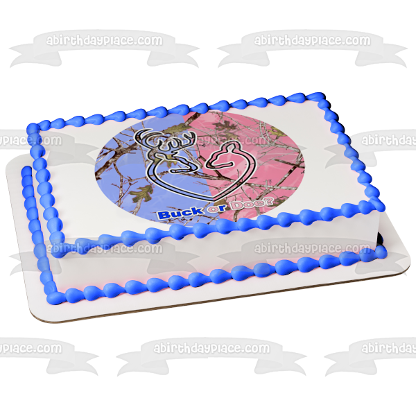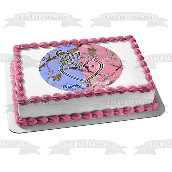 Celebrate your Gener Reveal party with this Buck or Doe Edible Cake Topper Image featuring Blue and Pink Camo!