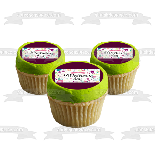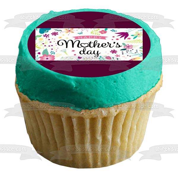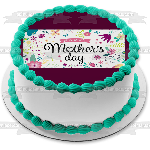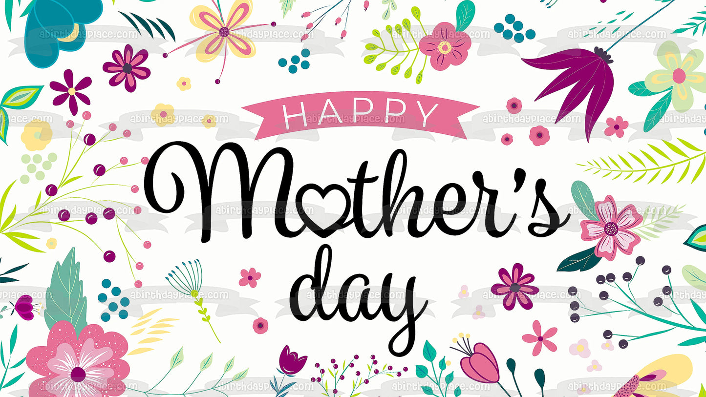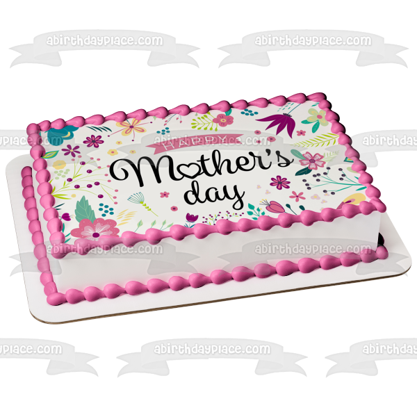 Decorate your Cake with this Happy Mother's Day themed Edible Cake Topper Image featuring Colorful Flowers!