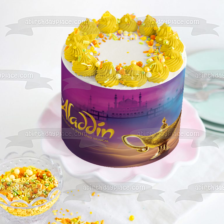Celebrate your special occasion with this Aladdin 2 The Spectacular West End Musical themed Edible Cake Topper Image featuring The Genie's Lamp!