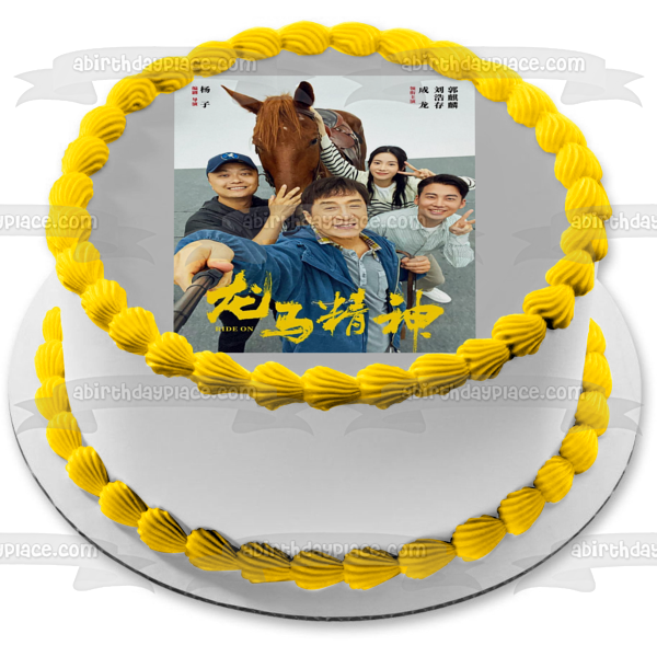 Celebrate your event with this Ride On themed Edible Cake Topper Image featuring Lao Luo and Xiamao!