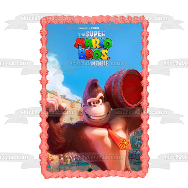 Celebrate your special event with this The Super Mario Bros. Movie themed Edible Cake Topper Image featuring Donkey Kong!