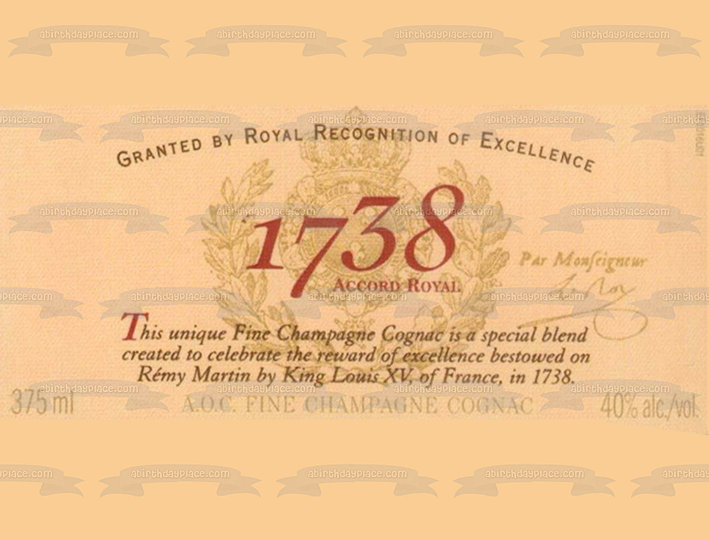 Celebrate your special day with this 1738 Accord Royal Label themed Edible Cake Topper Image!