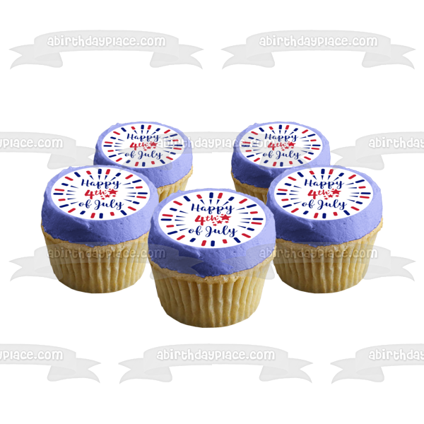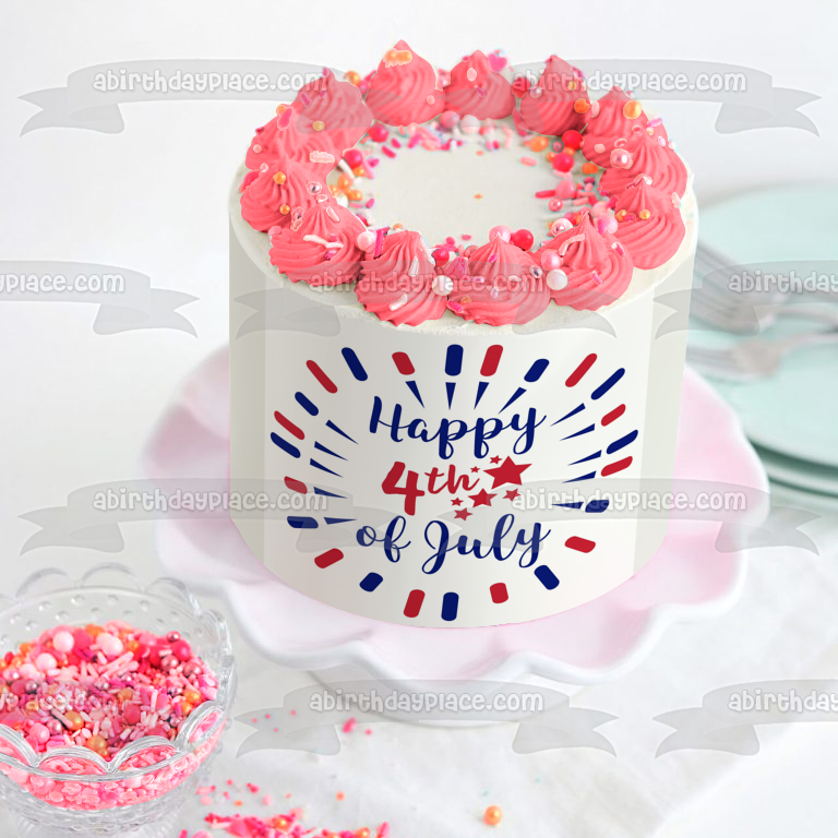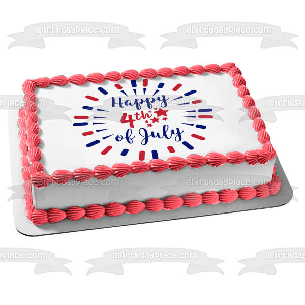 Celebrate your special day with this Happy 4th of July themed Edible Cake Topper Image featuring Red and Blue Stars!