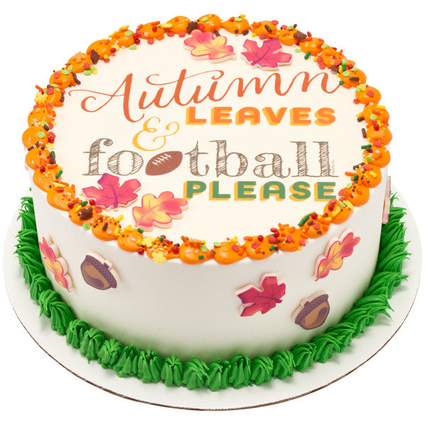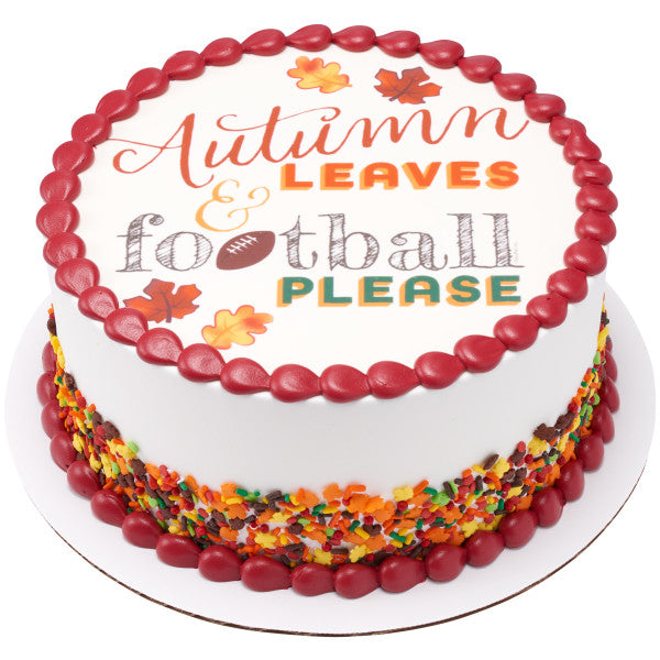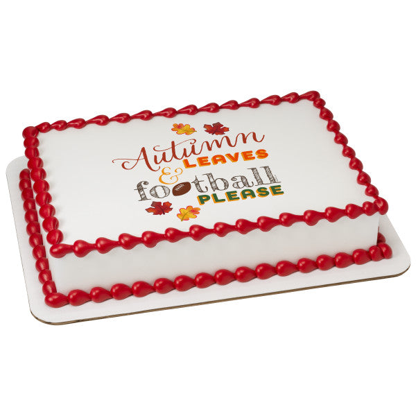 Autumn Leaves & Football Please Edible Cake Topper Image