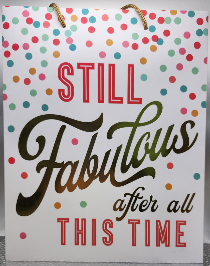 Wonderfully designed high quality and reusable gift bags featuring a vibrant celebratory color palette complemented by expressive gold typography. Available in 2 assorted sentiments: HAPPY BIRTHDAY GORGEOUS, STILL FABULOUS AFTER ALL THIS TIME. Choose your design from the drop-down menu.