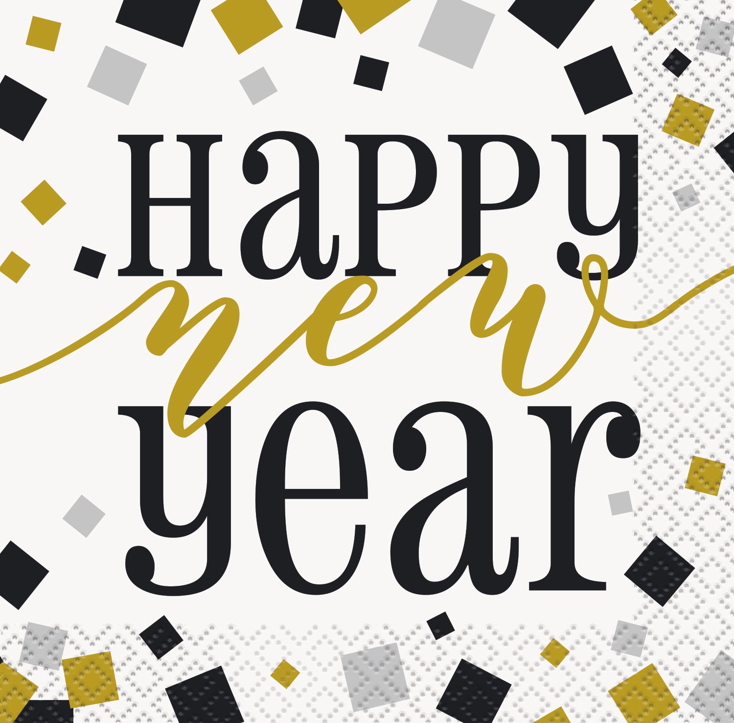 Black, Gold & Silver New Year Beverage Napkins, 16ct