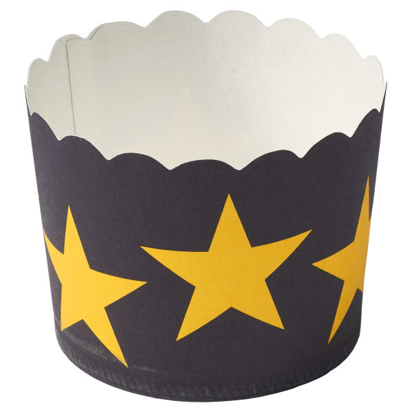 Give your display striking color. Black baking cups with gold stars are prefect for your delicious cupcakes. Oven Safe.