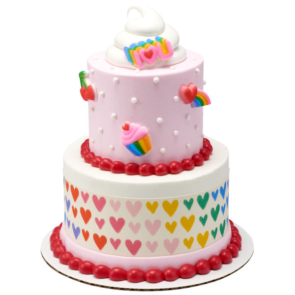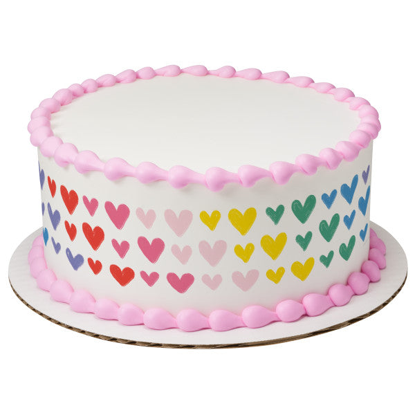 Bright Rainbow Hearts Edible Cake Topper Image Strips