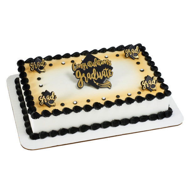 Celebrate with your graduate this season with this Congratulations Graduate cake topper! Assortment includes both silver and gold foil sayings of Congratulations Graduate. Made with food safe plastic.