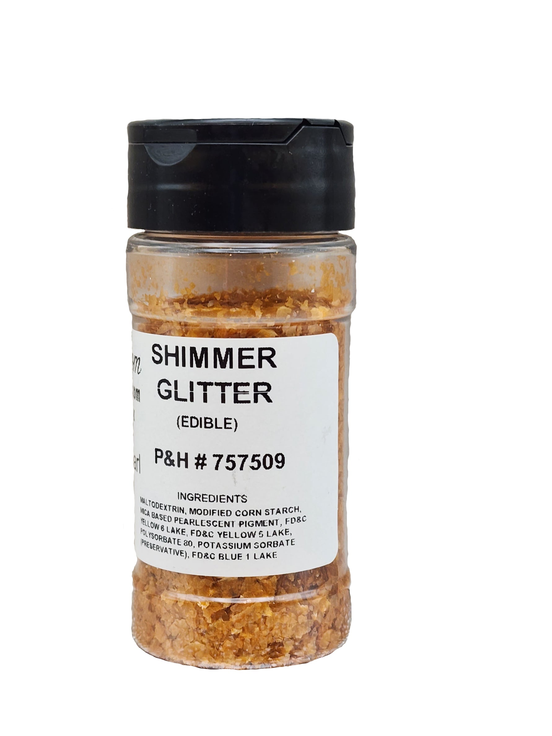 Copper Pearl glitter is the perfect finishing touch for a variety of treats for birthdays, holidays, and can match any occasion. Glitter is meant to be consumed. 1 ounce per bottle.
