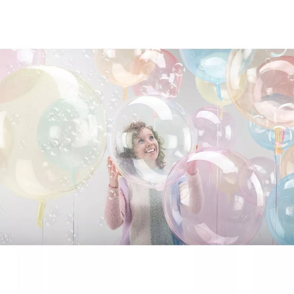 Add a dash of whimsy to your party using a Crystal Clearz Clear Balloon! This transparent balloon isn't your average balloon: it's shaped like a beach ball. Fill it up with air or helium, and then mix and match with solid-color and printed foil and latex balloons to suit your party or event theme! This clear spherical balloon is super stylish and perfect for an ocean-themed birthday party, bubbly baby shower, or any celebratory event that needs a trendy touch.