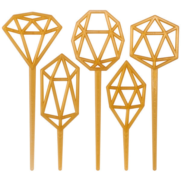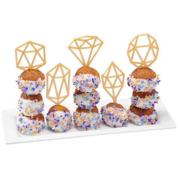 Add some glitz and glam to your cakes with gold geometric shaped DecoPics. Includes 5 assorted geometric DecoPics per package.