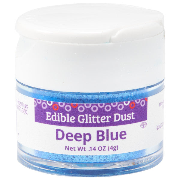 This deep blue dust is the perfect finishing touch for a variety of treats for birthdays, holidays, and can match any occasion. Glitter is meant to be consumed. 4 gram jar.