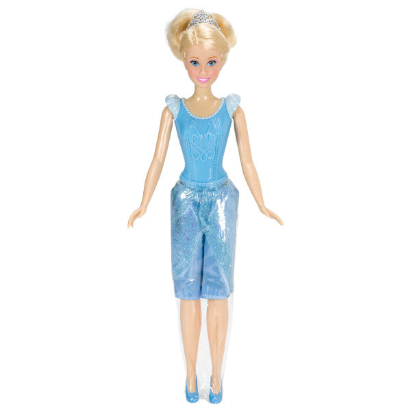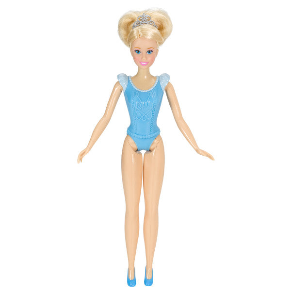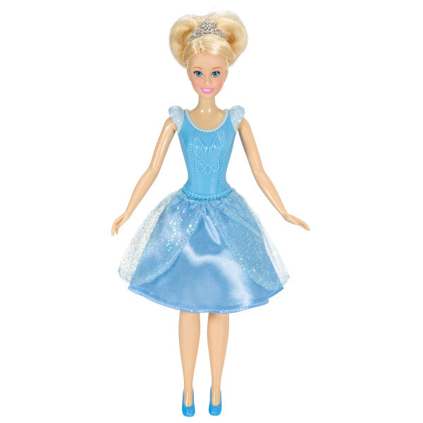 The star of the ball will also be the star of any Cinderella themed birthday party. Collectible doll - exclusively available from DecoPac - is clothed in a blue molded plastic bodice and a shining fabric skirt. Skirt is covered in plastic to protect it during use as a cake decoration. Arms and legs move for little girls to enjoy hours of play after the party. 1-Piece set.
