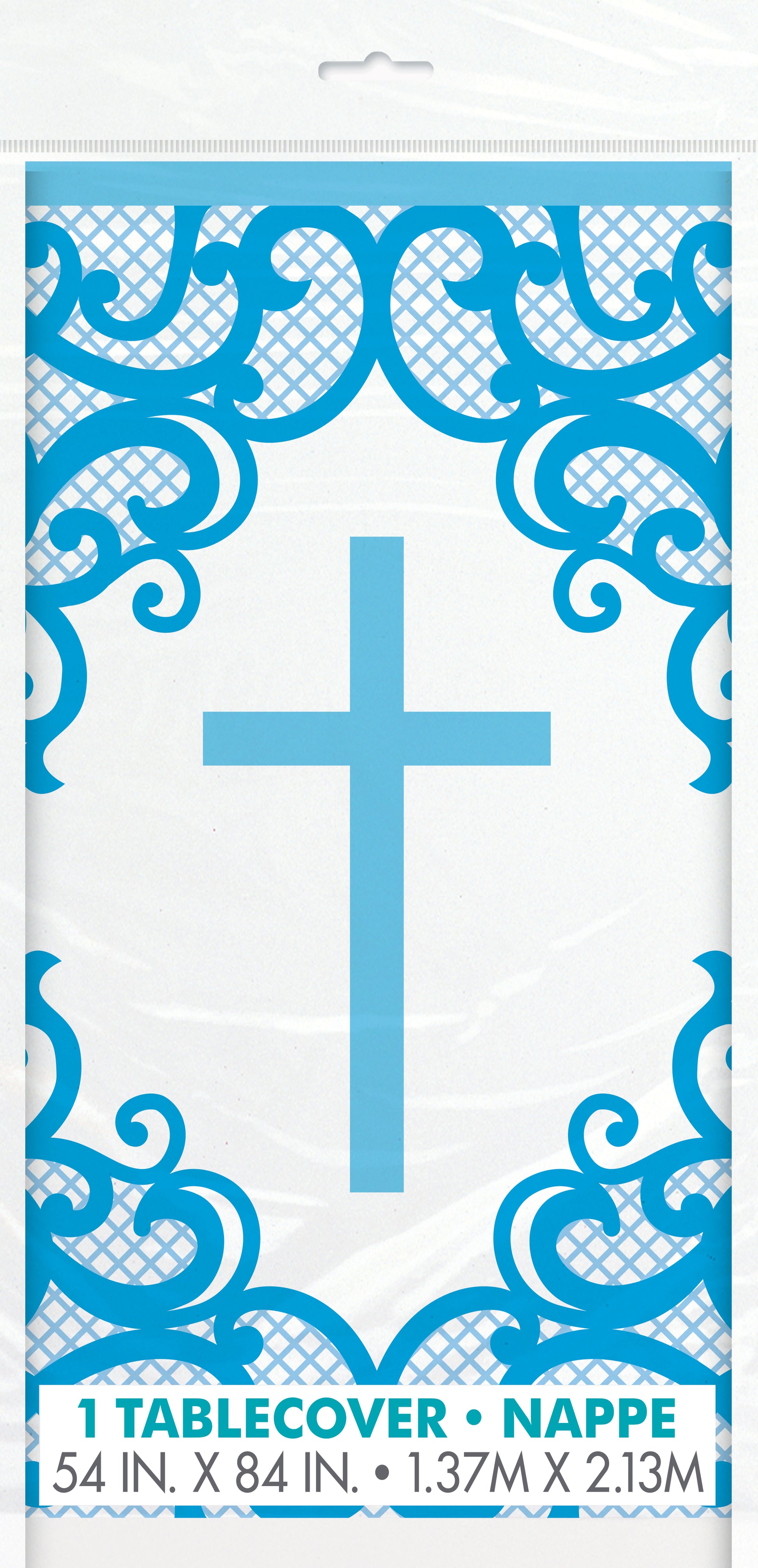 Fancy Blue Cross Rectangular Plastic Table Cover, 54" x 84", 1ct