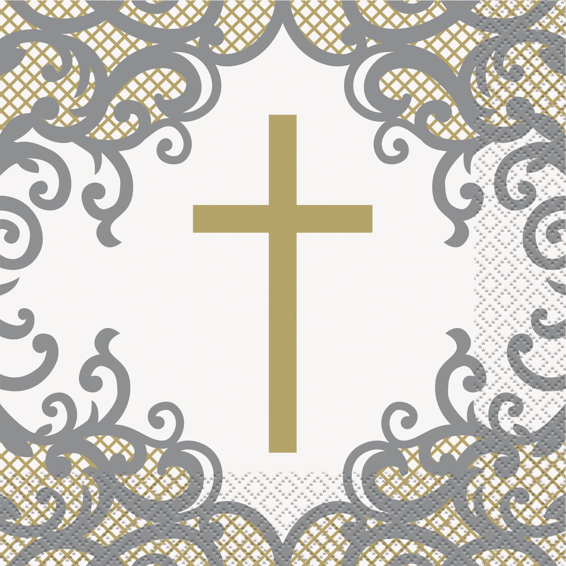 Fancy Gold Cross Luncheon Napkins, 16ct