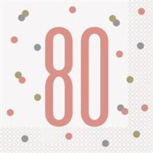 Decorate your Birthday party table with these Pack Of 16 Glitz 2 Ply Rose Gold Luncheon Napkins Age 80.
