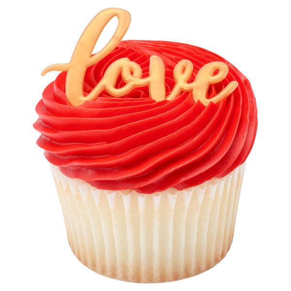 A simple gold love script is the perfect cupcake topper for Valentine's Day, wedding, wedding showers and more. Elevate your design with sprinkles to match any color scheme!