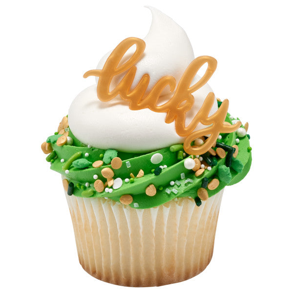 Add a fun script to your St. Patrick's Day cupcake assortment with this Lucky Cupcake Layon! These re super fun to use on all kinds of treats from cupcakes to cakes to donuts and even fruit salads! These layons make it easy to get creative!