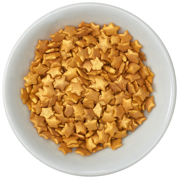 Make any dessert shine with gold star quins! Metallic, gold stars are a bakery must that will work with a variety of cake themes for any age.