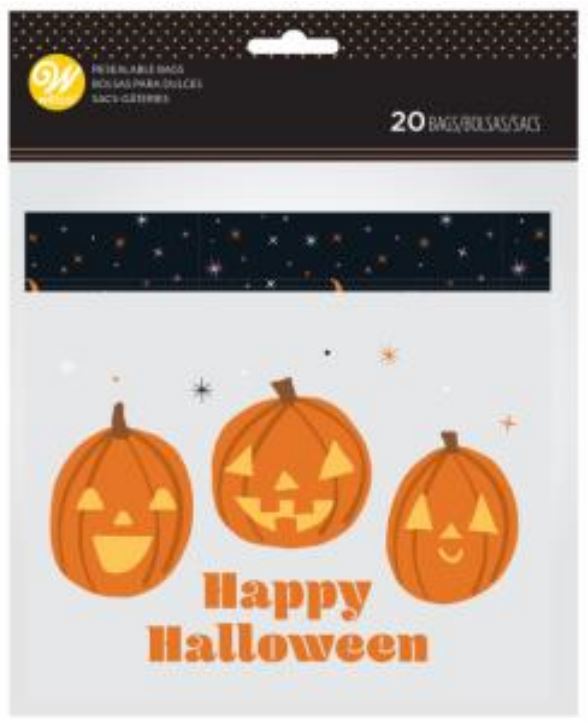 Surprise guests, friends and fellow trick-or-treaters with these cute Trick or Treat Halloween treat bags. Great for Halloween parties, October birthdays or packaging festive Halloween lunches and snacks, these unique Halloween treat bags can be filled with popcorn, chocolate-covered pretzels, homemade cookies, brownies, candy, trail mix or even little toys and gifts! Each pack contains 20 bags with a resealable opening, so they are great for little boys and ghouls on the go. You can use these Halloween treat bags for school parties or for wrapping up party favors for a Halloween celebration. Featuring three adorable jack-o-lanterns and a fun “Happy Halloween” message, these resealable individual Halloween treat bags are ready for snacking!