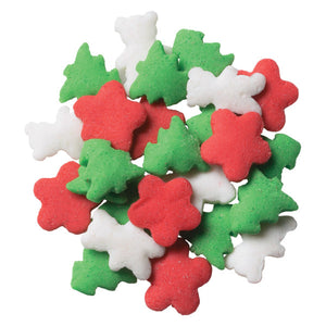 Create wonderful holiday memories with this assortment. Assortment includes white bears, red poinsettias, and green trees. Made in the USA. Kosher. Due to the nature of the product, slight color variations may occur.