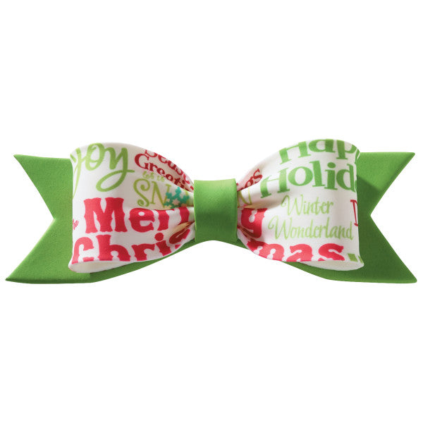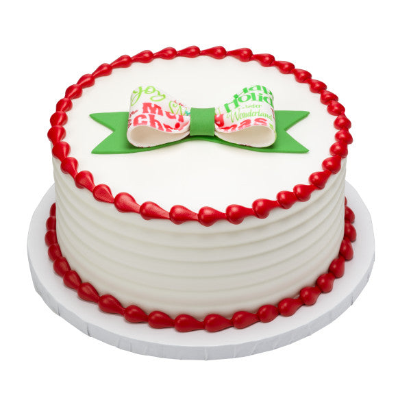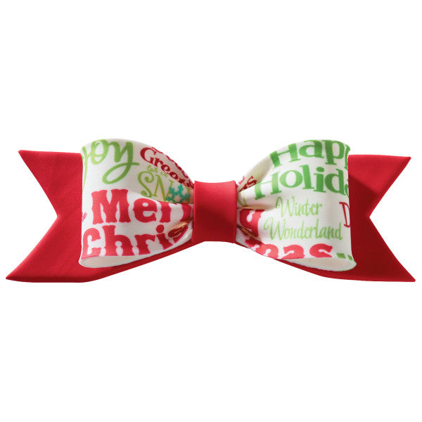 Enhance your creation by adding a holiday gum paste bow. All bows have holiday greetings that say: Merry Christmas, Seasons Greetings, Joy, and Winter Wonderland. Gum paste is food safe and intended as non-edible decoration only. Due to the nature of this product, some breakage may occur and the product has been priced accordingly.
