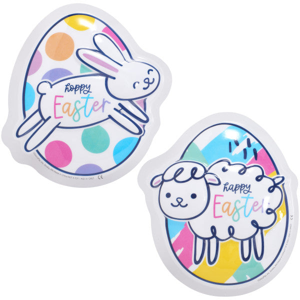 Make this Easter one to be remembered when you add these colorful cake Pop Tops® to your cake. Features a patterned egg with a cute lamb or bunny rabbit and a "Happy Easter" message.
