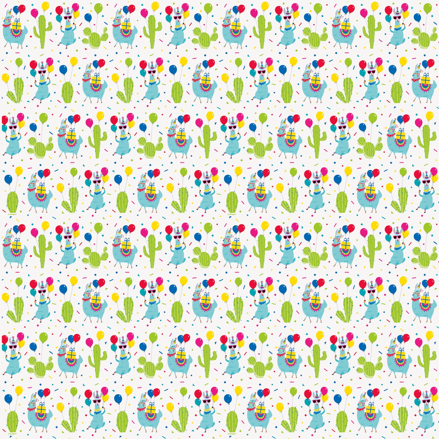 You found the perfect gift, now wrap it up in Llama Gift Wrapping Paper! This bright wrapping paper has a white background covered in llamas, cactuses, balloons, and colorful confetti. Celebrate their special day with this multicolor paper wrap.