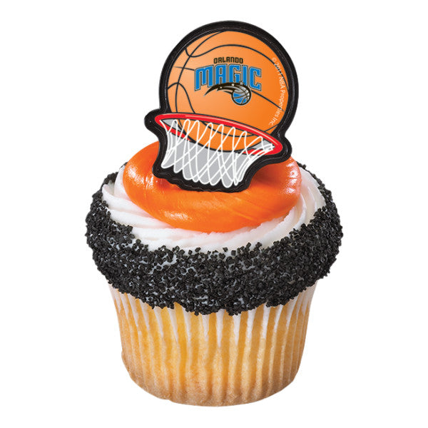 Basketball fans can celebrate with their favorite NBA team the Orlando Magic! These rings feature the officially licensed logo for the team. Great for cupcakes, donuts, or even finish off the look of a cake. Made with food-safe plastic.