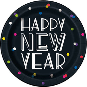 Neon Dots New Years Round 9" Dinner Plates, 8ct